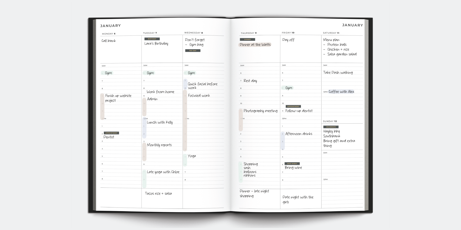 If you're obsessed with being organised and thrive on knowing what you've got coming up in your week - this is the planner for you . The A5 Weekly Planner is your go to "no fuss" planner.
